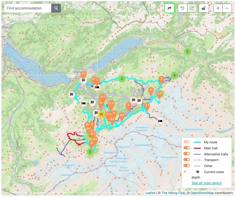 Sam and Steve’s 13 day itinerary designed in The Hiking Club planning app.